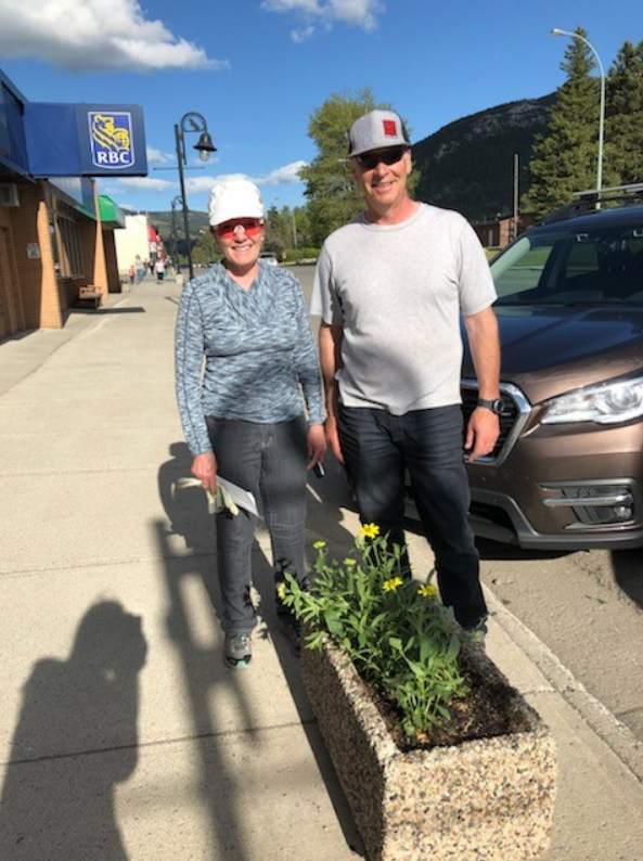 With a grant from the Crowsnest Pass Ag Society, and with support from Spring Break Flower Farm, the Crowsnest Pass Chamber of Commerce conducts flower planting in downtown Blairmore.